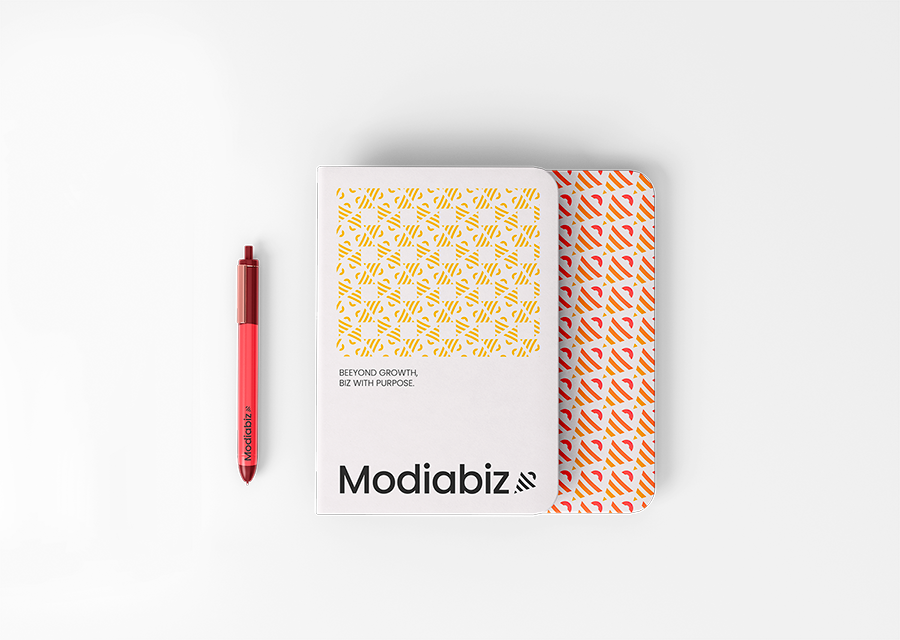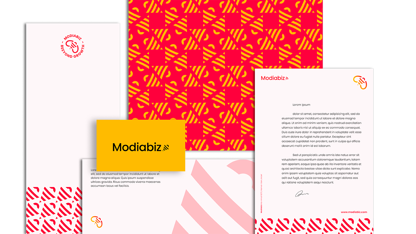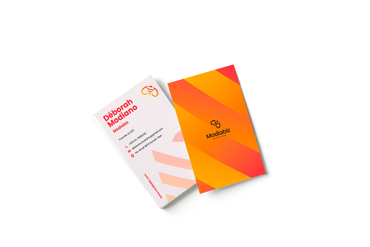 Il fallait à Modiabiz une identité visuelle qui illustre son activité, avec une contrainte : un logo en forme d’abeille, à l’origine du nom de la société et parce que ce symbole est cher à sa fondatrice dont le prénom signifie “abeille” en hébreu. Cette abeille intègre les messages clefs que Modiabiz veut faire passer – sa capacité à agir sur la notoriété des marques, à faire croître les opportunités commerciales de ses clients, dans une logique d’implantation et d’élévation de leur activité. Les motifs associés – une ruche bourdonnante – illustrent l’énergie déployée par Modiabiz pour répondre à leurs ambitions.